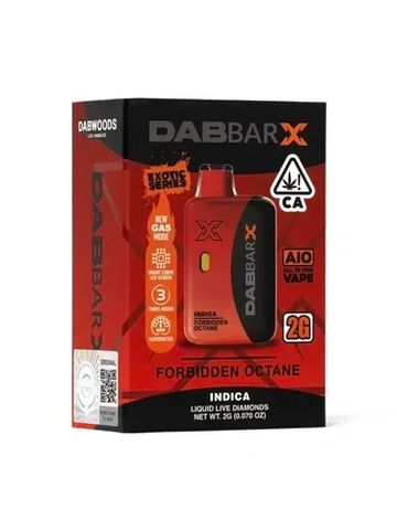 Forbidden Octane is a heavy-hitting indica in Dab Bar X’s disposable vape, delivering deep body relaxation and stress relief. Perfect for evening use and unwinding into calm, restful vibes.