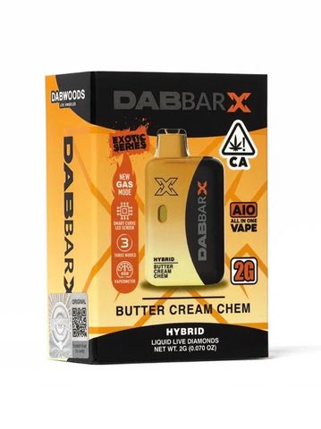 Butter Cream Chem is a smooth, sweet hybrid in Dab Bar X’s disposable vape, delivering balanced head and body effects. Perfect for stress relief, relaxation, or boosting mood and creativity.